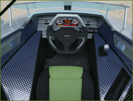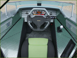 Daten: Breite 1820 mm, Länge 4475 mm, Höhe 1200 mm, Motor: Porsche Boxster S, Gewicht 1500 kg