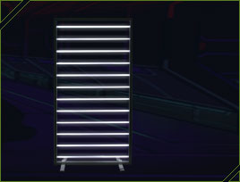 Breite 130 cm, Länge 15 cm, Höhe 230 cm, 12 Neonröhren a 36 Watt Gewicht 24 kg